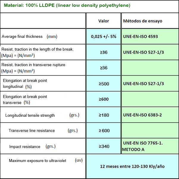 These are the technical data of the SuperGrass agricultural film: