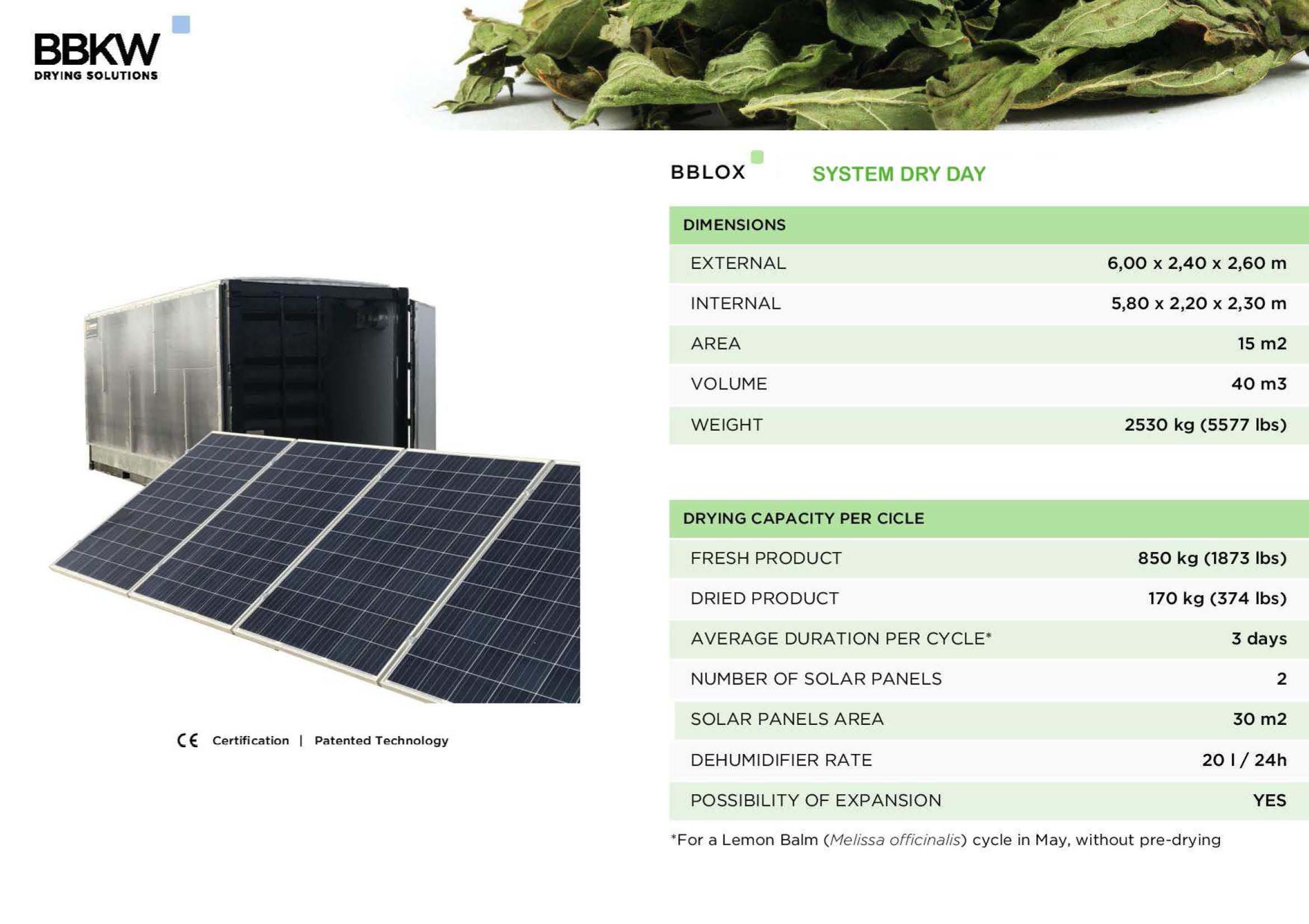 HYBRID SOLAR DRYER - AROMATIC, MEDICINAL PLANTS AND FOOD - BBKW STANDARD SYSTEM DAY CUT