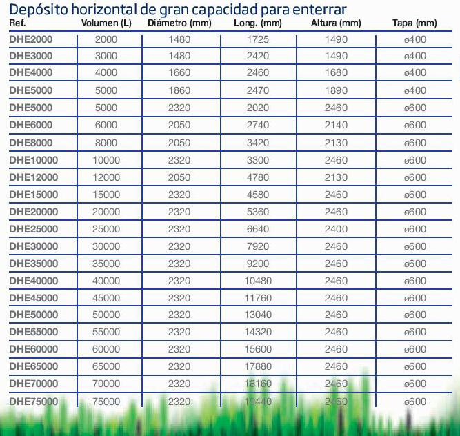 • Depósitos horizontales de PEAD para el almacenamiento de agua y otros líquidos (consultar para verificar la compatibilidad).