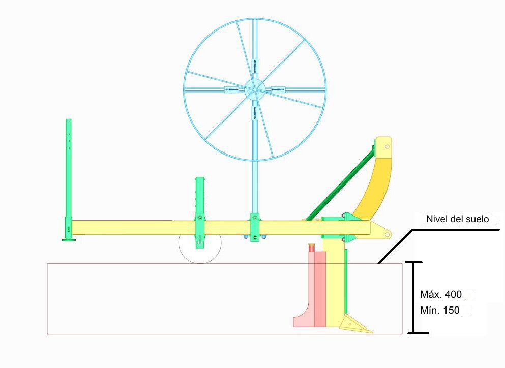 Profundidad ajustable mediante el desplazamiento vertical del brazo enterrador.