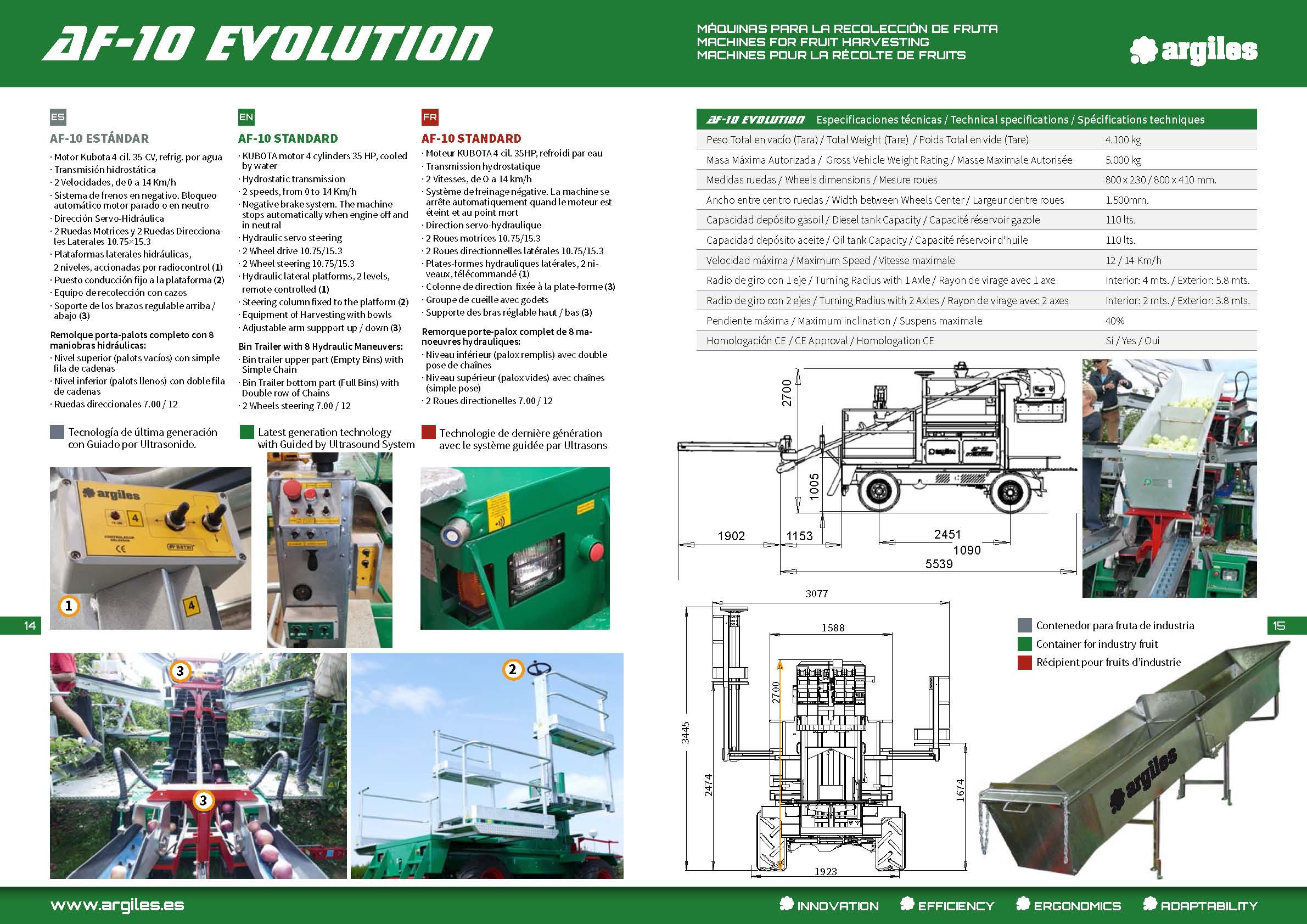 Equipamiento Estándar de la Máquina de Recolección de Frutas Argiles AF-10 Evolution