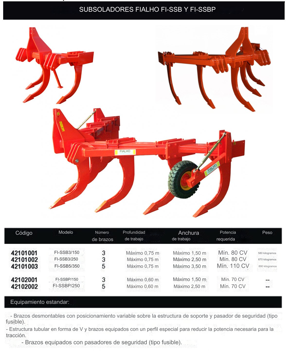 Características Principales del Subsolador Fialho FI-SSB: