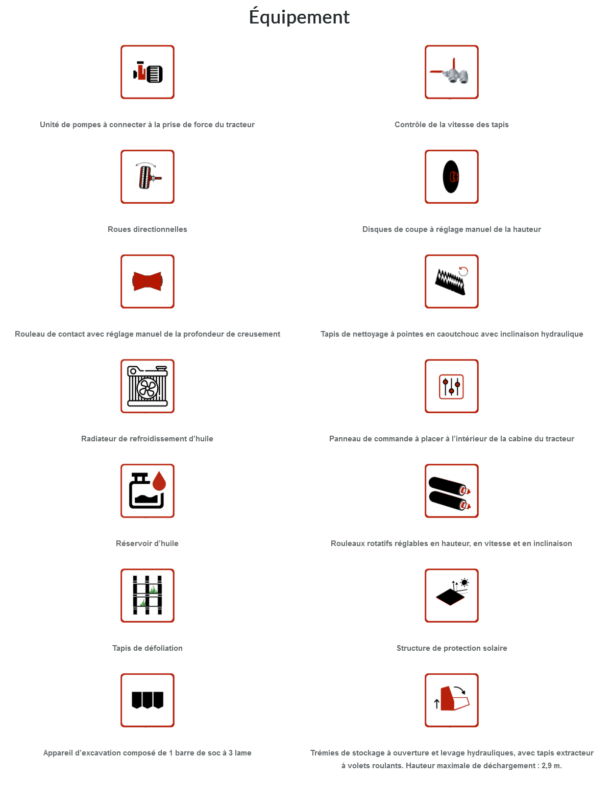 Si vous recherchez une récolte automatisée d'excellence pour vos cultures de petite et moyenne taille, la Récolteuse Automatique de Pommes de Terre CARLOTTI SPRING ALX-RH est le choix approprié. Sa technologie de pointe, sa performance impeccable et son engagement envers la qualité du produit en font une option inégalée. Assurez-vous une récolte efficace et des résultats supérieurs avec la CARLOTTI SPRING ALX-RH