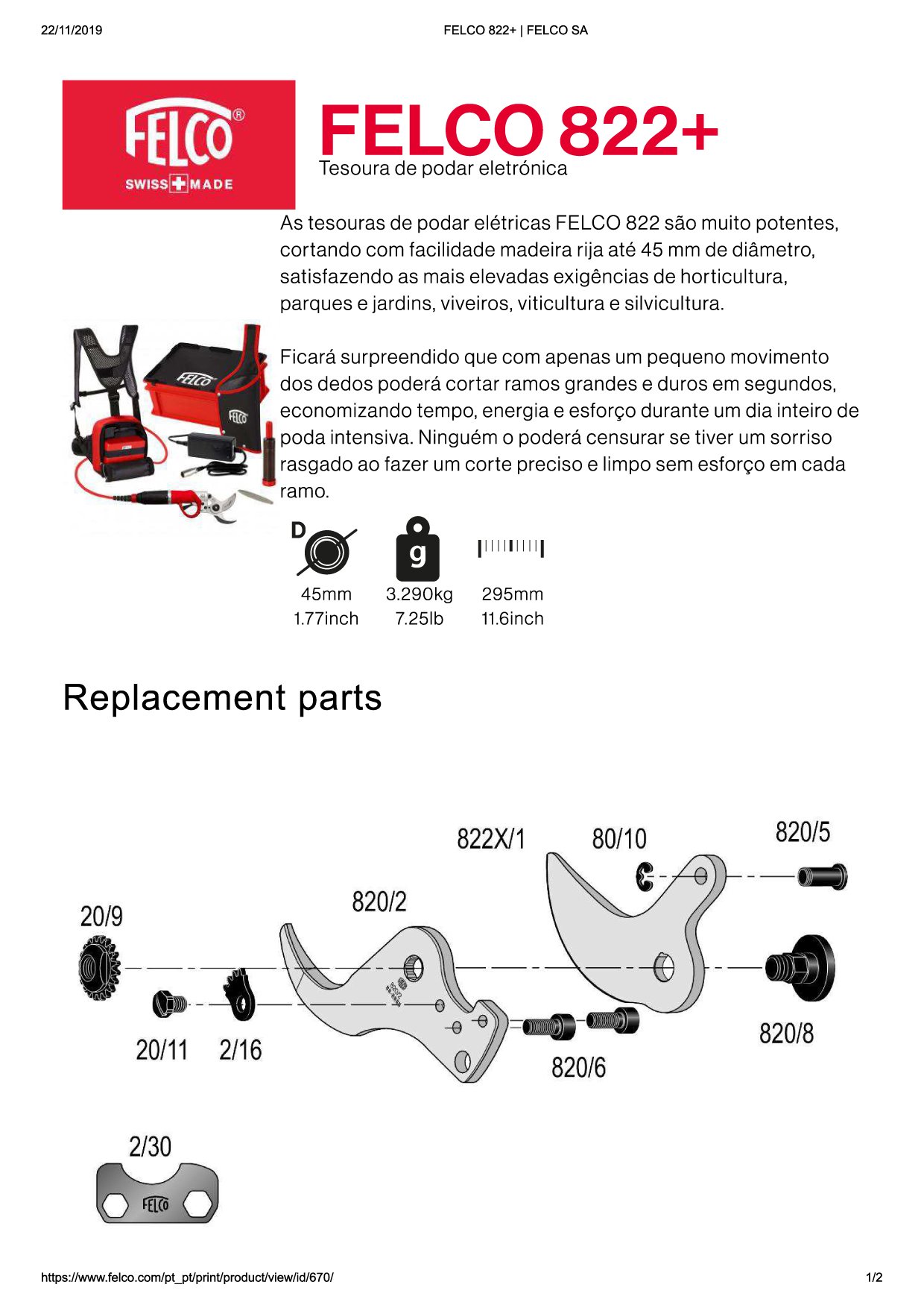 outil pratique pour toutes sortes de travaux d'élagage. FELCO F822 HP Caractéristiques: Avec un