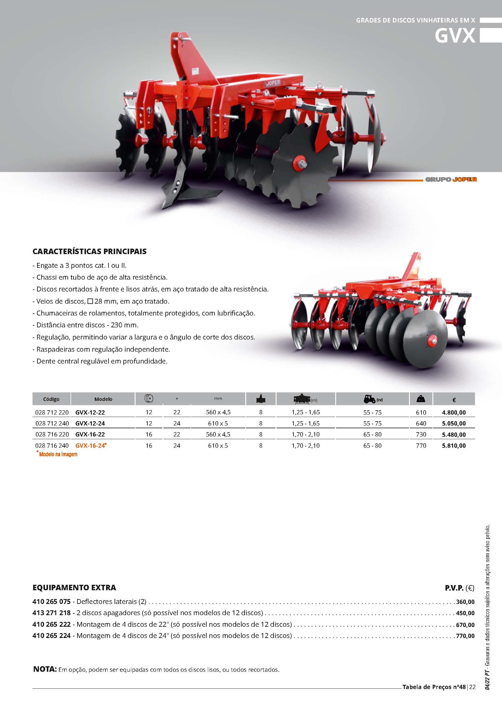 GRADE DE DISCOS JOPER VINHATEIRAS EM X - GVX - 55 A 80 CV