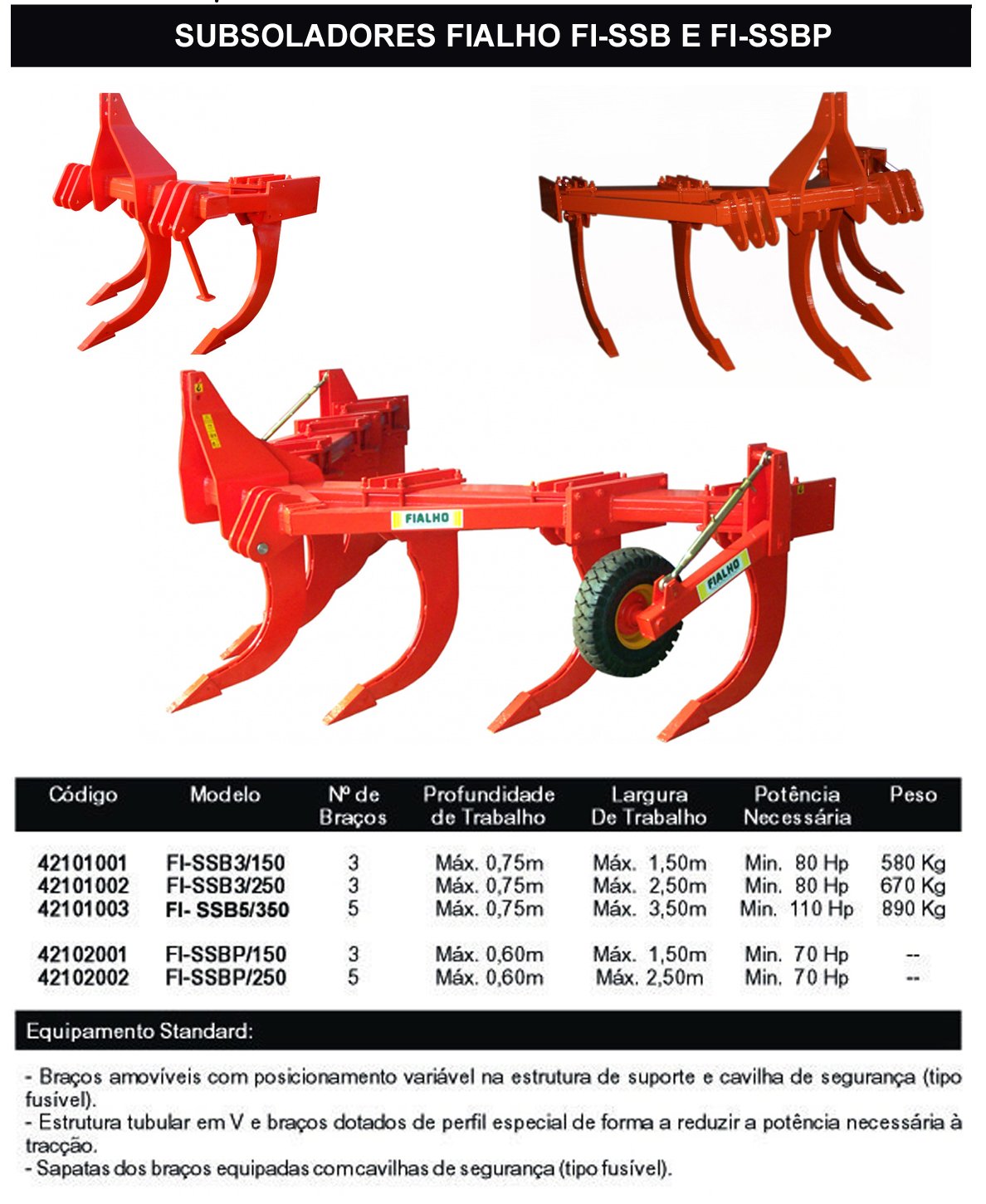 O Subsolador Fialho FI-SSB é uma escolha confiável para agricultores que buscam melhorar a qualidade do solo e promover condições ideais para o crescimento das culturas. Invista na qualidade da Fialho para otimizar suas práticas agrícolas.