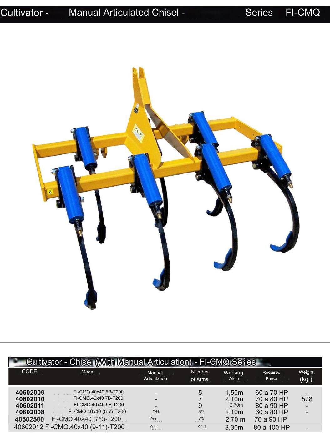 The FIALHO FI-CMQ-T100 Series Chisel Cultivator is the reliable choice for farmers seeking efficiency and durability in soil preparation operations. With its manual articulation, robust structure, and safety system, this series is designed to meet your agricultural needs with confidence and superior performance.