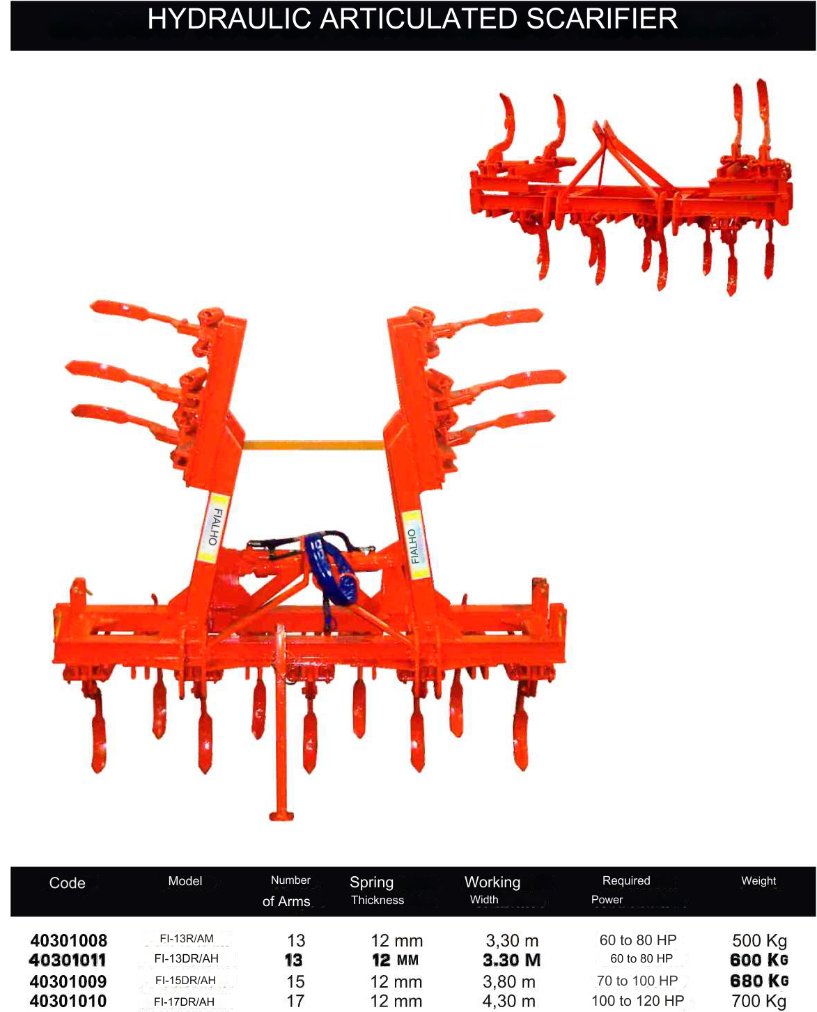 Enhance the efficiency of your agricultural operation with the Reinforced Articulated Hydraulic Scarifiers FIALHO from the FI-DR-AH Series. Discover innovation in scarification to achieve superior results on your terrain!