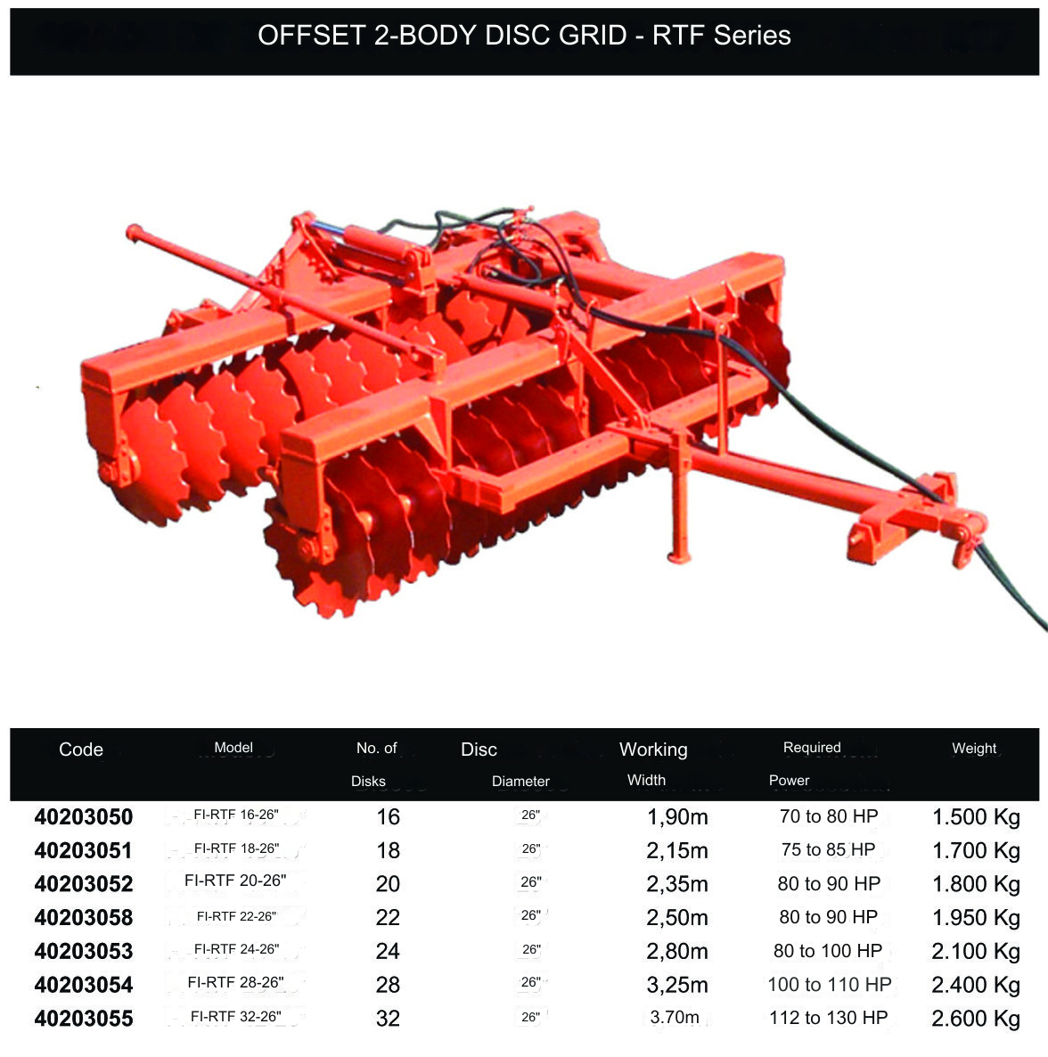 If you're in search of a reliable and efficient tool to prepare the soil on your agricultural property, the Fialho FI-RTF Disc Harrow is the ideal choice. This towed equipment offers exceptional features, including bearing hubs and a hydraulic device for fixing the working angle, making it a versatile and high-quality option for farmers and industry professionals.