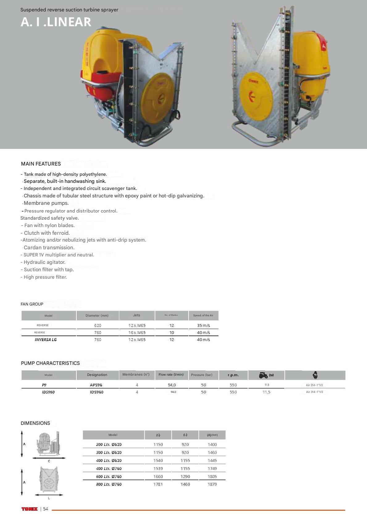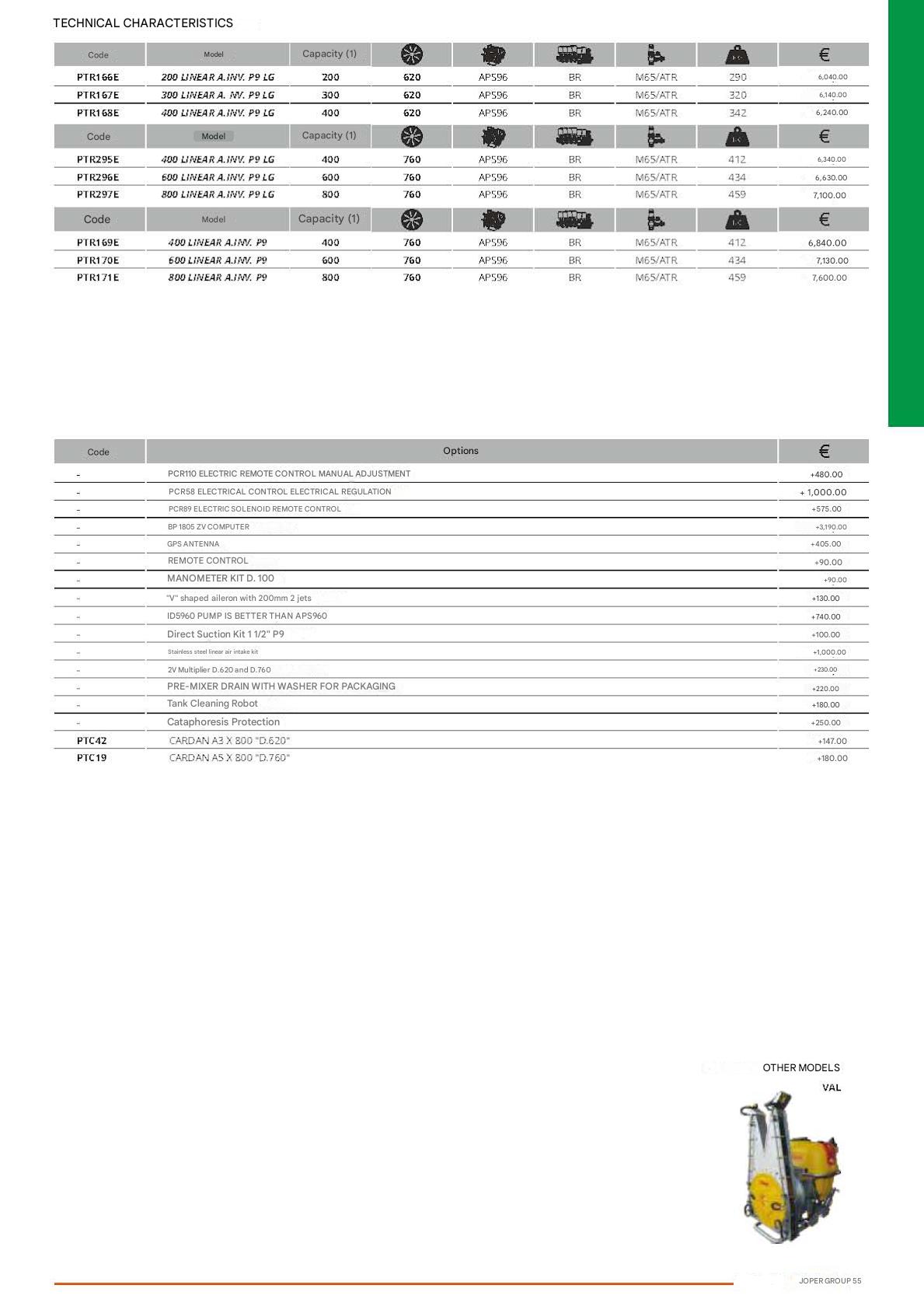 - Diaphragm pumps with flow rate of 94 liters / minute and pressure of 50 Bars (details E | F).