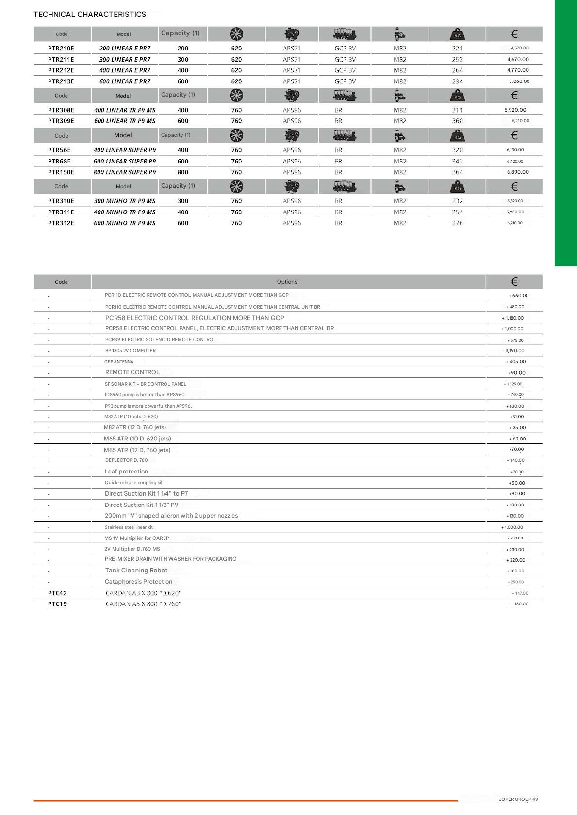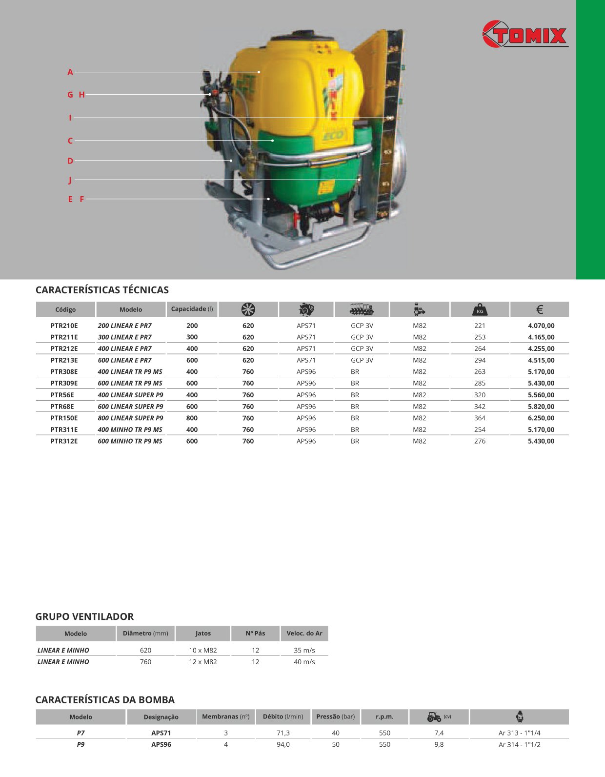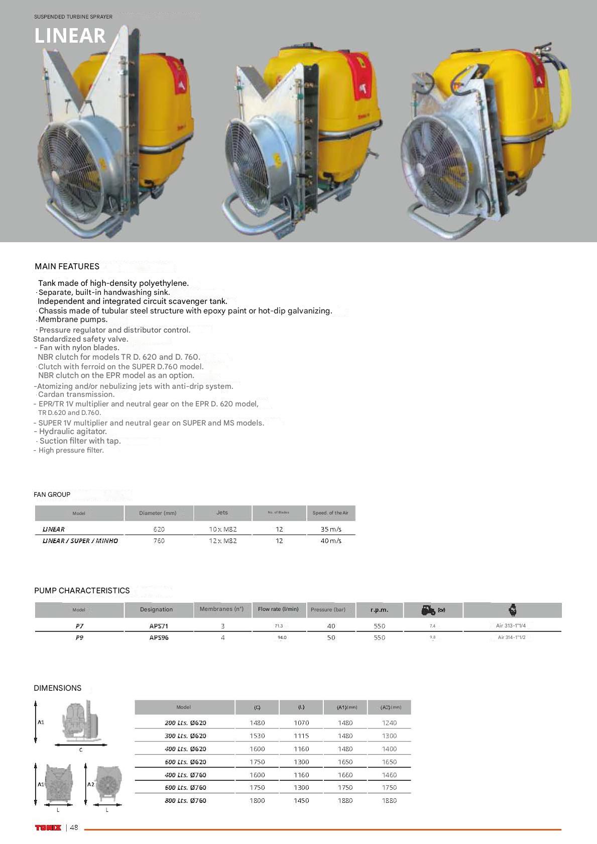 LINEAR TURBINE SPRAYERS - LINEAR MINHO C / MEMBRANAS PUMP