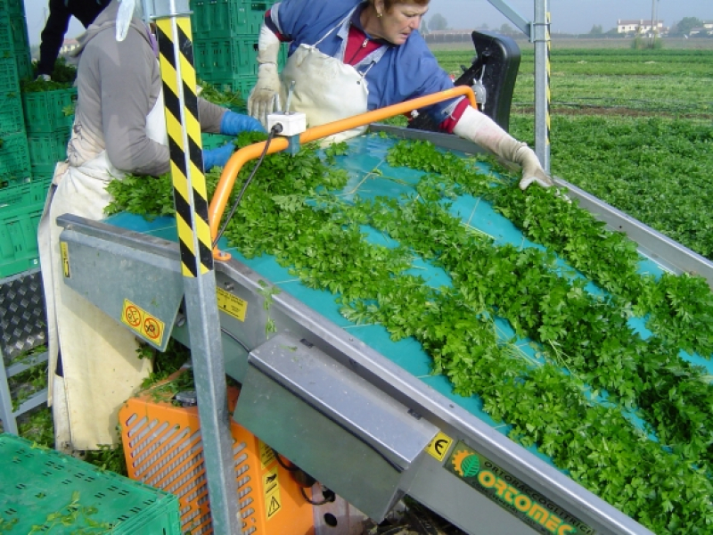 All the cut products will be placed in the same direction over the conveyor belt, allowing an easy removing of yellow leaves, keeping the harvesting time in the field quicker and facilitating tying.