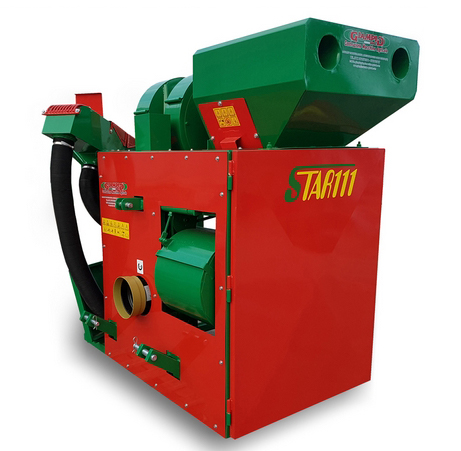El aspirador de frutas secas mod. Star 111 está compuesto por un sistema de aspiración por ventilación y succión con dos tubos de 100 mm de diámetro con una longitud de acuerdo con la legislación vigente. Se adhiere a la tipología de tierra especialmente en campos empinados y tierras no preparadas para la recolección. El funcionamiento de la máquina pasa por el PTO del tractor hace girar un ventilador aspirante que mete en funcionamiento un sistema el desfoliado del producto