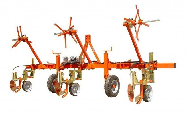 El sistema electrónico e hidráulico avanzado permite la distribución eficiente de la cinta de riego y, después de la colocación, activa discos laterales que depositan una capa de tierra sobre la cinta. Este proceso evita desplazamientos causados por el viento, manteniendo la posición adecuada de la cinta en el suelo.