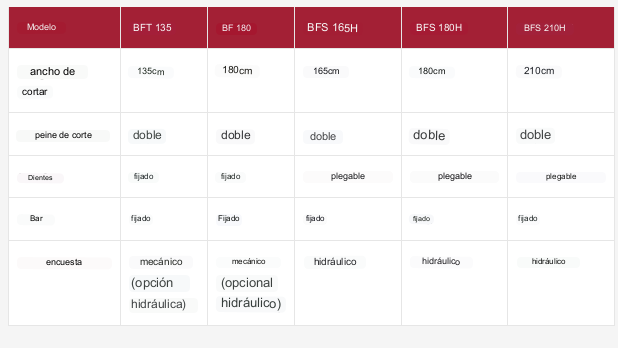 Están disponibles en la versión con dientes fijos (serie BF), dientes desmontables (serie BFS) y con elevación hidráulica (serie H).