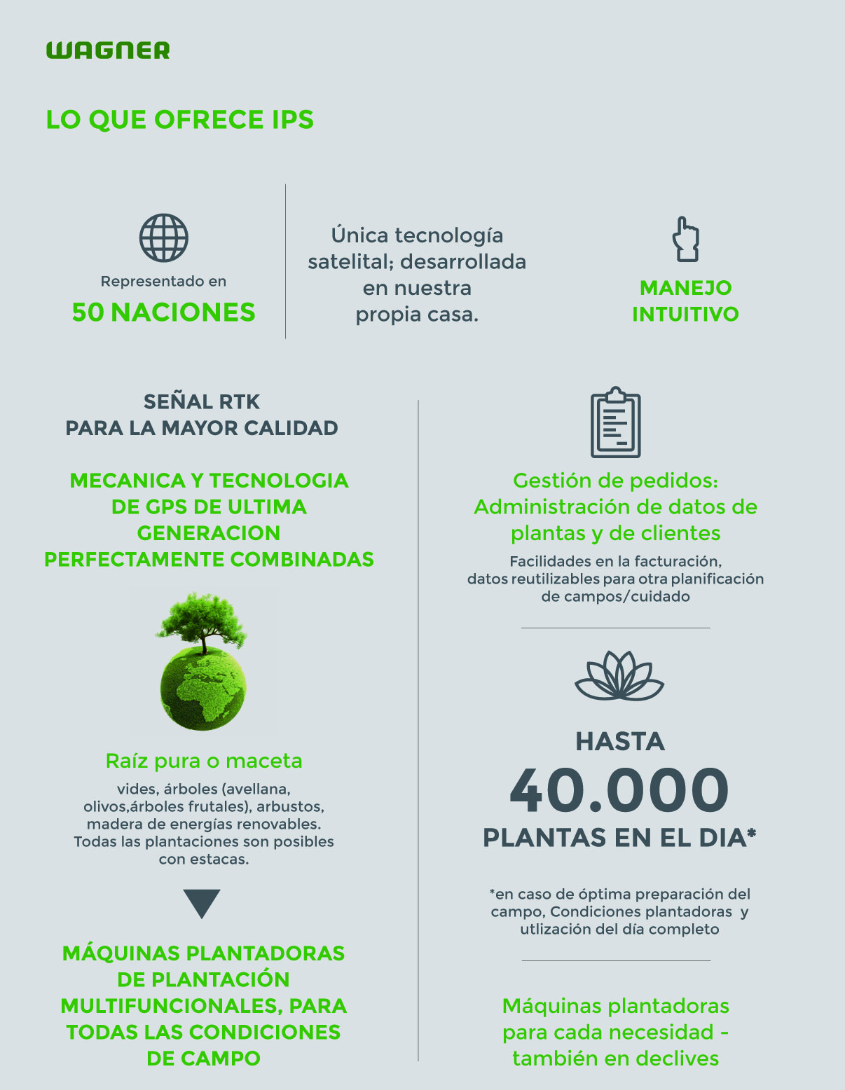 Descubra la tecnología de plantación que está revolucionando la agricultura moderna. El sistema Wagner IPS combina innovación, precisión y eficiencia para ofrecer resultados superiores en cualquier tipo de plantación.