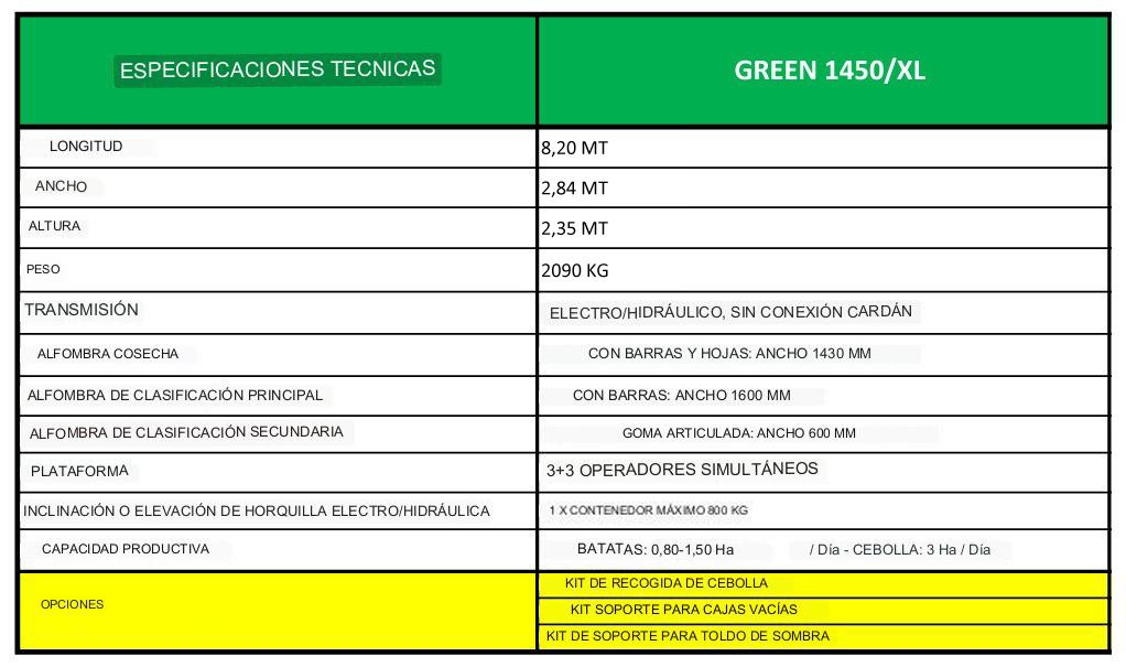 Su diseño simple y moderno no solo contribuye a su estética, sino que también facilita la operación y el mantenimiento. La combinación de un rendimiento de calidad, una capacidad de procesamiento eficiente y características innovadoras convierte a la CARLOTTI GREEN 1450/XL en una opción única en el sector de la cosecha de batatas y cultivos relacionados.