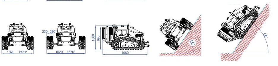 Además, la estabilidad y adherencia de este vehículo en terrenos difíciles son incomparables. Con la posibilidad de ajustar el ancho de vía de la rueda a 500 mm y una increíble inclinación de hasta 55°, podrás enfrentar cualquier desafío con facilidad. Nada será capaz de detener al HERBHY 50 C en su camino.