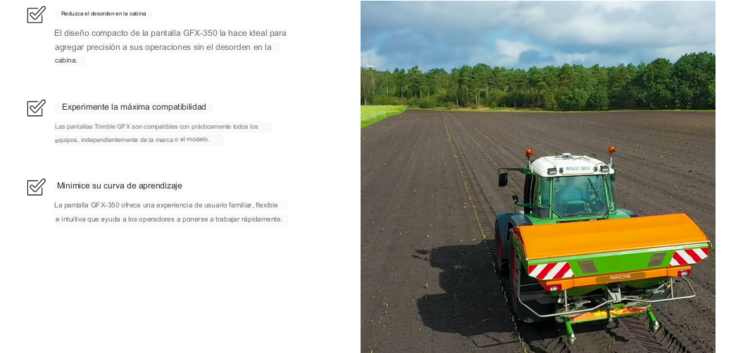 Si estás pensando en el GFX-350, probablemente sea el primer paso para integrar la tecnología de agricultura de precisión en tu operación, y es una excelente opción debido a su facilidad de uso, simplicidad y confiabilidad. Solo necesitarás una pequeña inversión de tiempo para comenzar; y una vez que esté en funcionamiento y hayas tenido la oportunidad de ver la diferencia que hace, es probable que te preguntes: ¿por qué tardaste tanto en probar la agricultura de precisión? Habla con tu distribuidor local para comenzar hoy mismo.