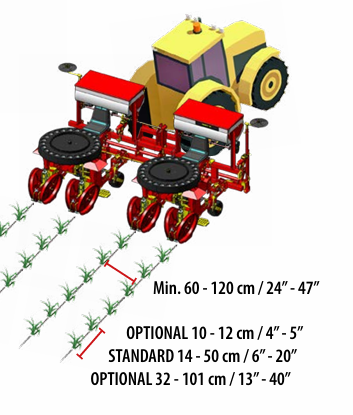 El dispositivo de control de plantas asegura un posicionamiento preciso y constante, mientras que las ruedas de compactación metálicas (o flex de goma de triple acción bajo pedido) proporcionan la firmeza ideal del suelo. Las raspadoras de alta eficiencia, con doble ajuste de altura e incidencia, garantizan un funcionamiento limpio y estable.