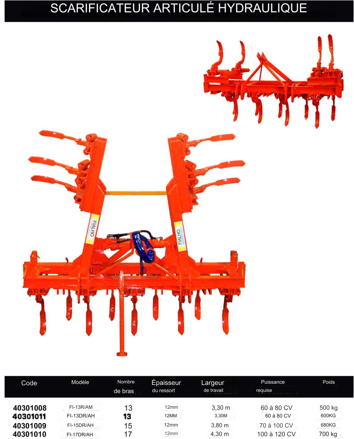 Améliorez l'efficacité de votre exploitation agricole avec les Scarificateurs Renforcés Articulés Hydrauliques FIALHO de la Série FI-DR-AH. Découvrez l'innovation en matière de scarification pour obtenir des résultats supérieurs sur votre terrain !