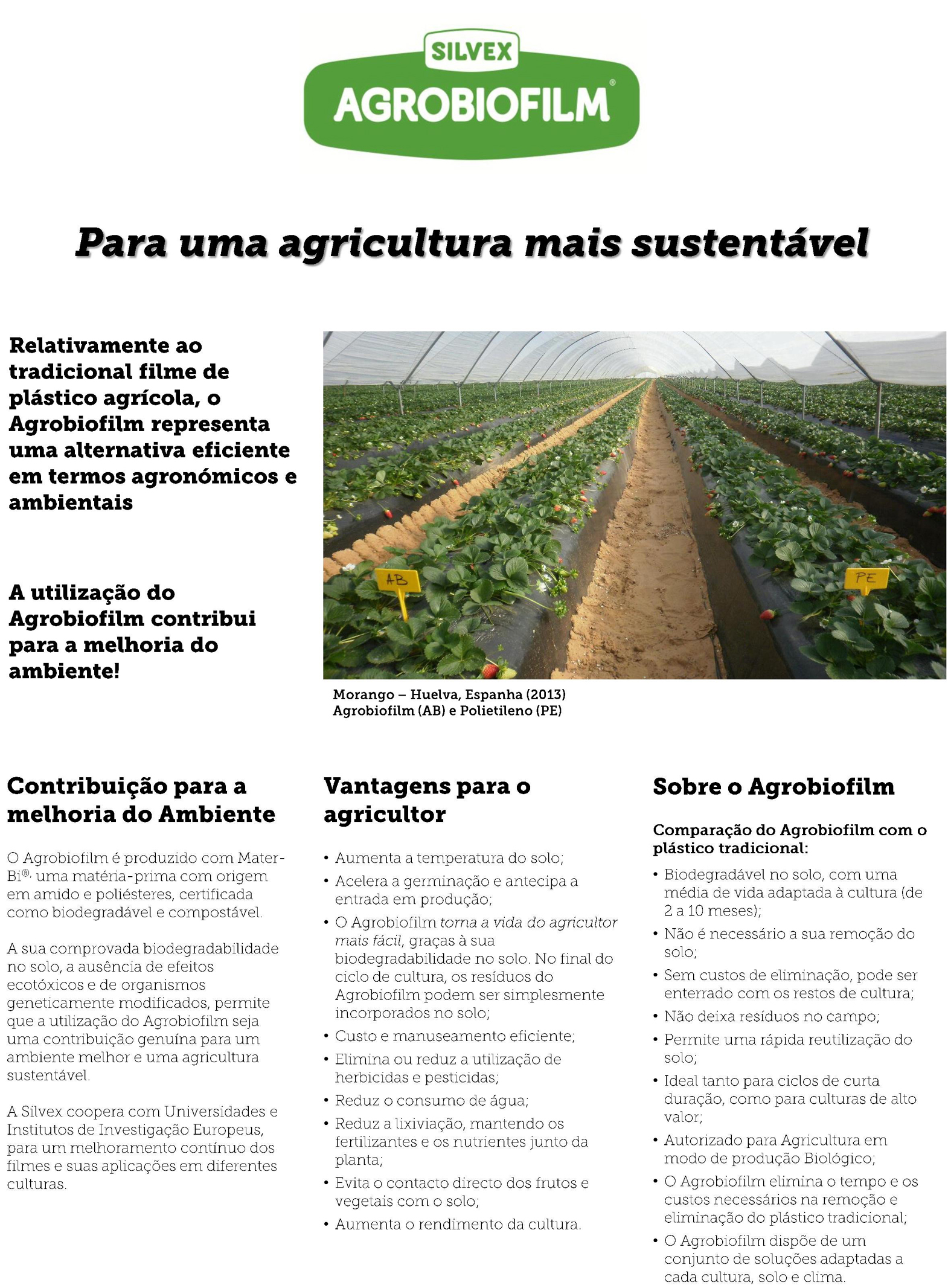 O mulch film a desenvolver no projecto AGROBIOFILM é obtido a partir da matéria-prima Mater-Bi®, produzida pela Novamont, uma empresa Italiana dedicada à busca de alternativas ambientalmente correctas aos plásticos baseados em polietileno. Mater-Bi® foi o primeiro bio-polímero biodegradável e compostável a ser criado. A Novamont protege a sua matéria-prima com mais de 50 patente.