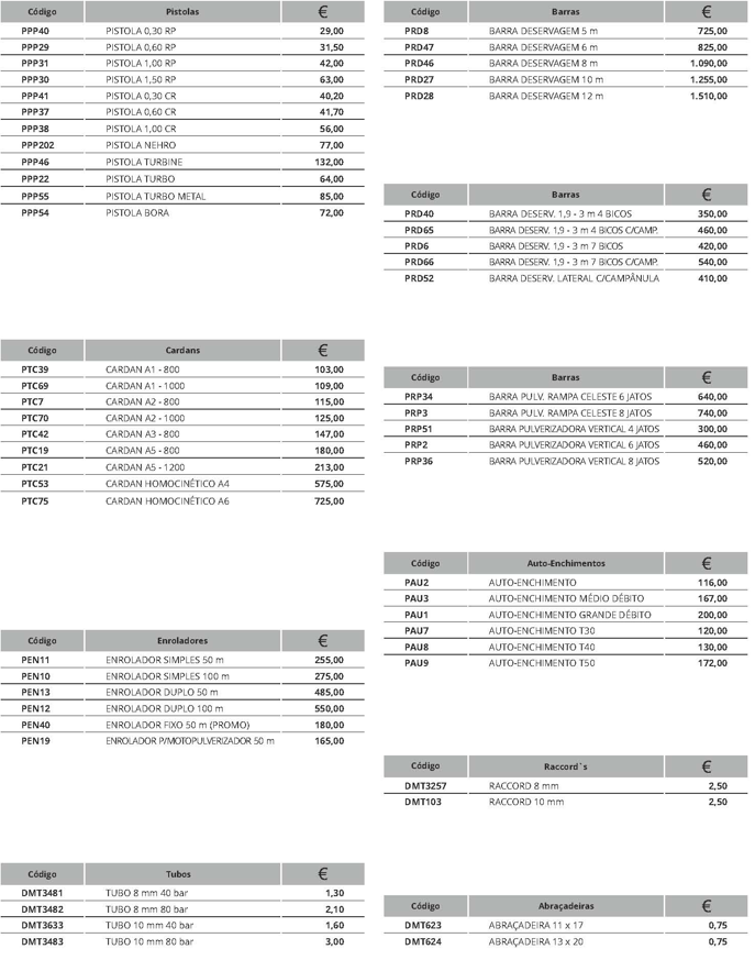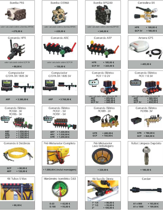 Acessórios adaptáveis: barras, bobines, pistolas, auto-enchimento e cardan.