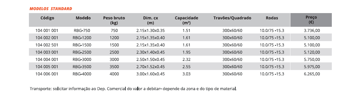Tabelas de Preços
