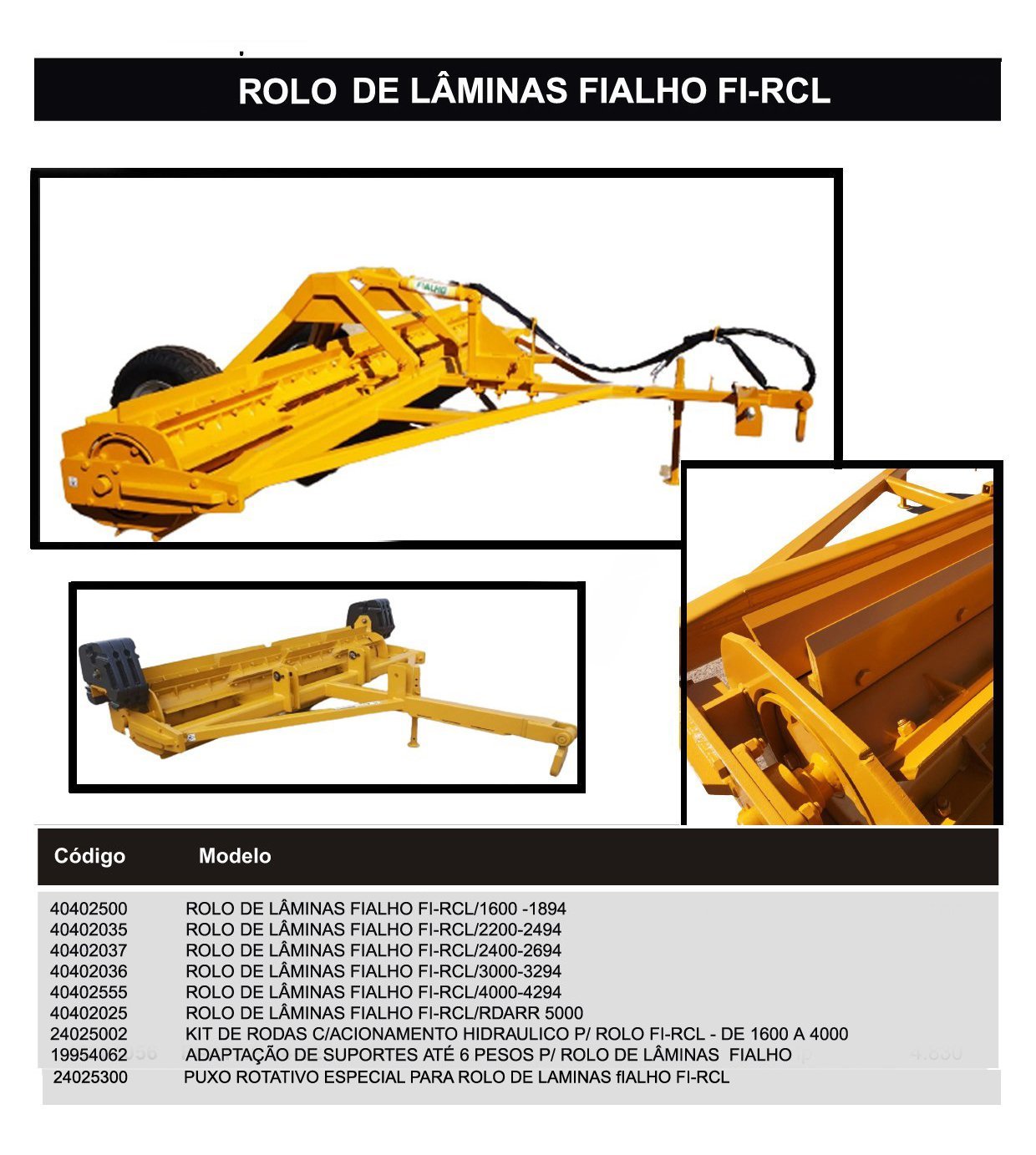 Características do Equipamento Padrão do Rolo de Lâminas Fialho FI-RCL:
